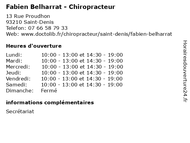 Lundi | 10:00-13:00 et 14:30-19:00 |