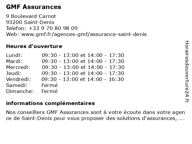 5 GMF Assurances (Distance: 10,10 km) 33 Avenue Anatole France, 93600 Aulnay-sous-Bois assurance auto, assurance habitation, assurance santé, assurances, crédit, devis en ligne, gmf, prise de rendez-vous, prévoyance, épargne 6 |