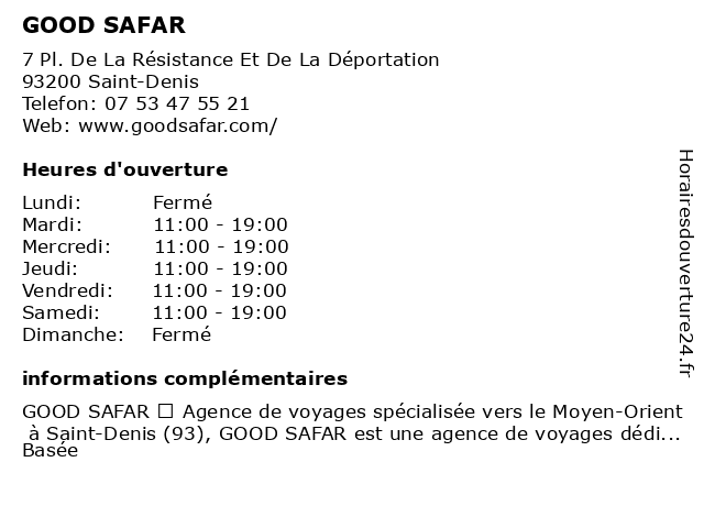 | Lundi | Fermé |