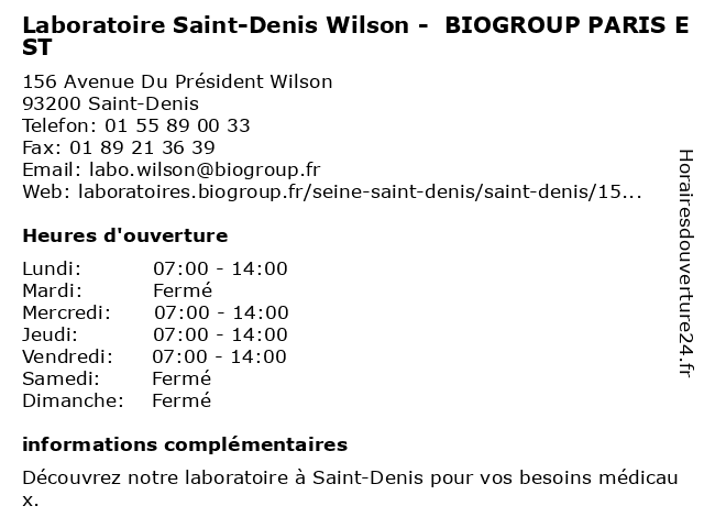 Termes de recherche pour Laboratoire Saint-Denis Wilson - BIOGROUP PARIS EST:wilson, saint, paris, denis, laboratoire, est, biogroup, dépistages, laboratoire de diagnostic |