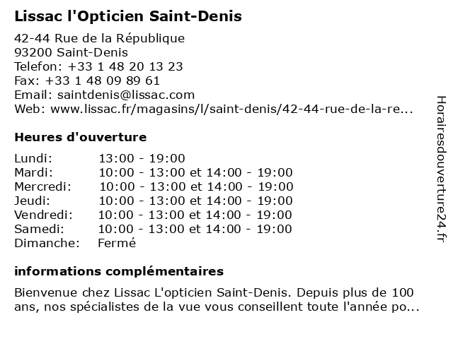 | Mercredi | 10:00-13:00 et 14:00-19:00 |