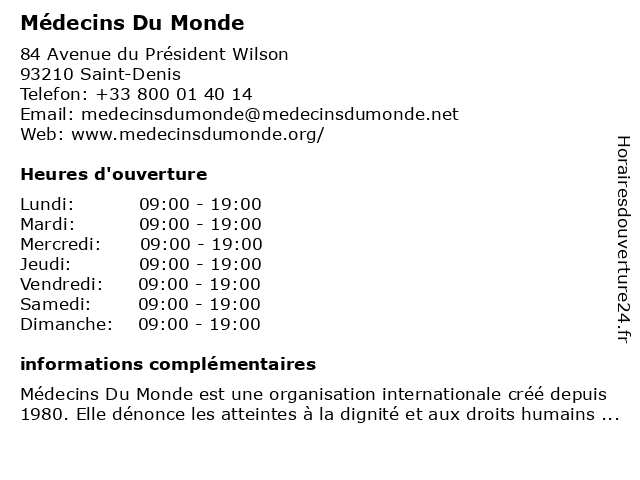 1 Médecins du Monde (Distance: 0,75 km) 8/10 Rue des Blés, 93210 La-Plaine-Saint-Denis aide, association, du, monde, médecins 2 Médecins du Monde (Distance: 7,78 km) 15 Boulevard de Picpus, 75012 Paris aide, association, du, monde, médecins 3 Coiffure du Monde (Distance: 1,33 km) 23 Rue Madeleine Vionnet, 93300 Aubervilliers alimentation, beauté & sante, coiffure, culture & loisirs, du, enfants, high-tech, maison & déco, mode, monde, restaurants 4 Coiffure Du Monde (Distance: 1,33 km) 23 Rue Madeleine Vionnet, 93300 Aubervilliers coiffure, du, hair salon, hair style tutorials, makeovers, monde, women 5 Le Monde du Voyage (Distance: 1,44 km) 108-110 rue des Rosiers, 93400 Saint Ouen antiquités, arts, du, décorations, le, maroquineries, monde, voyage 6 S.O.S Médecins (pharmacy) (Distance: 3,12 km) 5 Place Pigalle, 75018 Paris drugstore, médecins, pharmacy, s.o.s, urgent care |