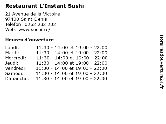 | Vendredi | 11:30-14:00 et 19:00-22:00 |