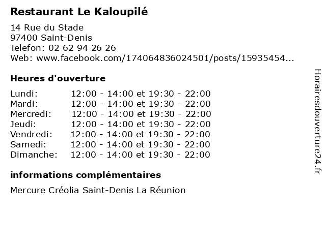 | Mardi | 12:00-14:00 et 19:30-22:00 |