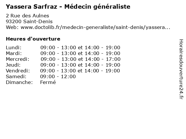 | Lundi | 09:00-13:00 et 14:00-19:00 |