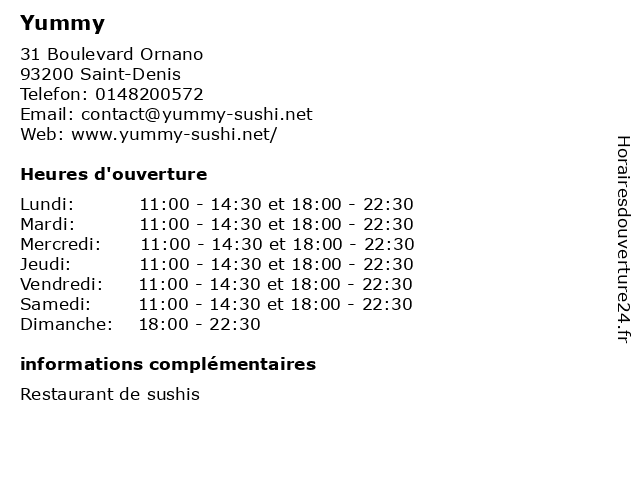 | Samedi | 11:00-14:30 et 18:00-22:30 |