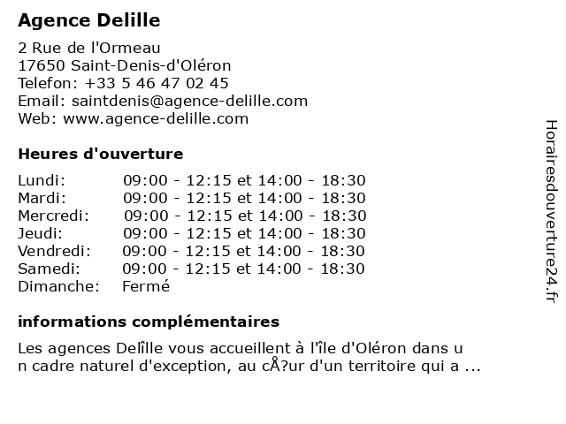 1 Agence Delille (Distance: 16,08 km)33 bis Route Départementale, 17550 Dolus-d'Oléron agence, delille