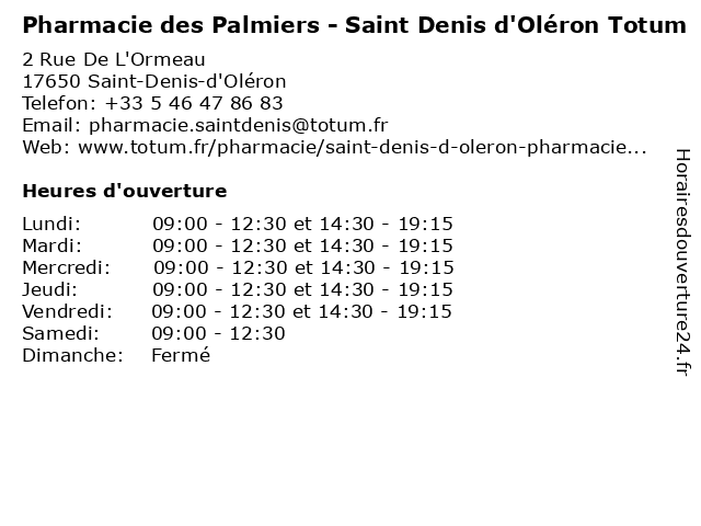 Termes de recherche pour Pharmacie des Palmiers - Saint Denis d'Oléron Totum:saint, d'oleron, des, denis, pharmacie, parapharmacie, palmiers, pharmacy, totum, pharmacie de garde, pharmacie bébé, pharmacie cancer, pharmacie garde, pharmacie test, pharmacie vaccin, pharmacie vaccination, pharmacie orthopédie, pharmacie phytothérapie, pharmacie entretien, pharmacie nutrition, atelier aromathérapie, bilan de prévention, parapharmacie saint-denis-d'oléron, pharmacie oléron, pharmacie saint-denis-d'oléron, premier soin, remise du kit de cancer colorectal |