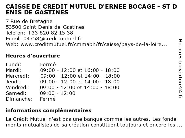 Termes de recherche pour CAISSE DE CREDIT MUTUEL D'ERNEE BOCAGE - ST DENIS DE GASTINES:de, st, denis, bocage, crédit, mutuel, caisse, d'ernée, gastines |
