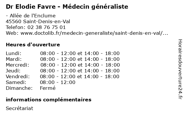 | Lundi | 08:00-12:00 et 14:00-18:00 |