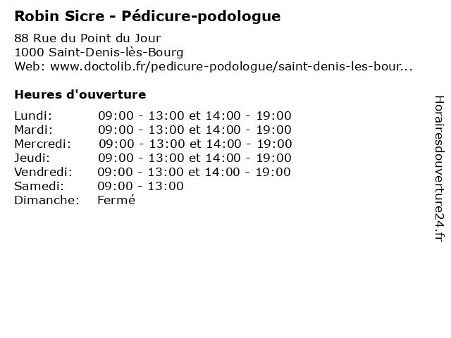 | Lundi | 09:00-13:00 et 14:00-19:00 |