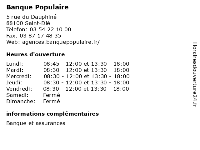 1 Banque Populaire (Distance: 0,98 km) 6 avenue Antoine de Saint-Exupéry, 88100 Saint-Dié agence, assurance, bancaire, banque, populaire 2 Banque Populaire (Distance: 15,46 km) 22 rue Jules Ferry, 88110 Raon-l'Etape agence, assurance, bancaire, banque, populaire 3 Banque Populaire (Distance: 19,07 km) 11 rue Léopold, 88600 Bruyères agence, assurance, bancaire, banque, populaire 4 Banque Kolb (Distance: 0,29 km) 8 place du Général de Gaulle, 88100 Saint-Dié agence, bancaire, banque, kolb 5 Banque De France (Distance: 0,37 km) 26 Rue d’Amérique, 88100 Saint Die Des Voges administration, assoc, banque, de, france, services, services publics 6 AXA Assurance et Banque Philippe CONRATH & Johann SOLER (Distance: 0,38 km) 2 Rue des 3 Villes, 88100 Saint-Dié-des-Vosges assurance, assurance appartement, assurance auto, assurance entreprise, assurance epargne, assurance habitation, assurance maison, assurance professionnelle, assurance santé, assurance voiture, axa, banque, conrath, et, johann, philippe, soler |