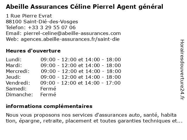 1 Mavi Assurances (Distance: 0,05 km) 13 Place du Général de Gaulle, 88100 Saint-Dié-des-Vosges assurances, mavi 2 MMA Assurances SAINT DIE (Distance: 0,11 km) 3 Rue de l'Amérique, 88100 Saint-Dié-des-Vosges assurance au tiers, assurance auto, assurance auto au tiers, assurance auto pas cher, assurance auto tous risques, assurance habitation, assurance habitation pas cher, assurance local, assurance multirisque, assurance professionnelle, assurance santé, assurance tous risques, assurance voiture, assurances, die, flotte, garantie décennale, mma, mutuelle, mutuelle sénior, rc pro, responsabilité civile, saint 3 Century 21 Rychner Immobilier Agent (Distance: 0,24 km) 33 Rue Thiers, 88100 Saint-Dié-des-Vosges 21, agent, century, immobilier, rychner 4 Matmut Assurances (Distance: 0,33 km) 13/15 Rue Dauphine, 88100 Saint-Dié-Des-Vosges agence d'assurance de biens, assurances, expert en sinistres, matmut, organisme d'assurance animaux de compagnie, organisme d'assurance auto, organisme d'assurance bateau, organisme d'assurance moto, organisme d'assurance-habitation, organisme d'assurance-vie, service d'assurance professionnelle 5 GAN ASSURANCES SAINT DIE JULES FERRY (Distance: 0,34 km) 17 Rue Thiers, 88100 Saint-Dié-des-Vosges assurances, die, ferry, gan, jules, saint 6 Areas Assurances (Distance: 0,56 km) 3 Place Saint-Martin, 88106 Saint-Dié-des-Vosges areas, assurances, santé, services |