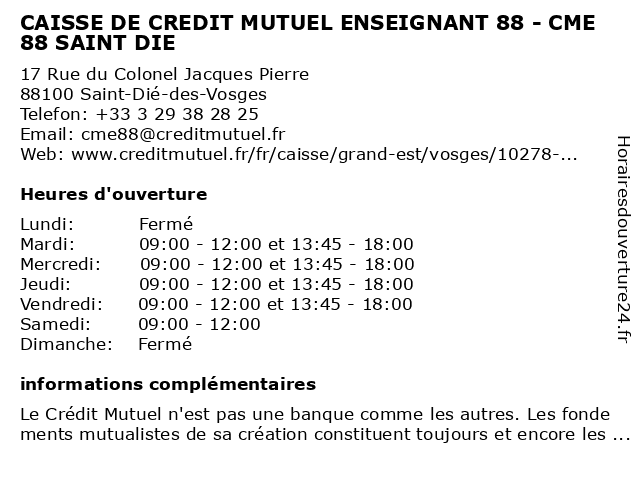 Termes de recherche pour CAISSE DE CREDIT MUTUEL ENSEIGNANT 88 - CME 88 SAINT DIE:de, saint, die, crédit, mutuel, caisse, 88, cme, enseignant |