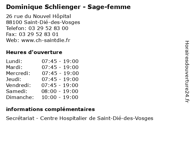 | Lundi | 07:45-19:00 |
