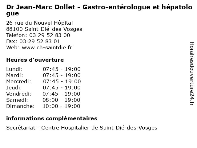 | Lundi | 07:45-19:00 |