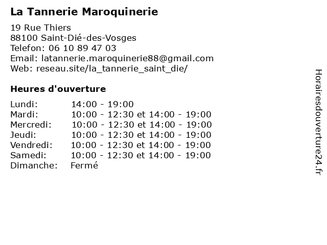 | Samedi | 10:00-12:30 et 14:00-19:00 |