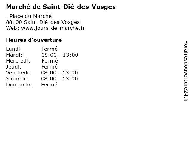 | Vendredi | 08:00-13:00 |