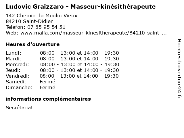 | Lundi | 08:00-13:00 et 14:00-19:30 |