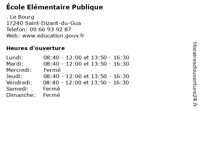 1 École Elémentaire Publique (Distance: 4,95 km) . Le Bourg, 17150 Saint-Thomas-de-Conac cours, education, elémentaire, publique, services, école, élémentaire 2 École Elémentaire Publique (Distance: 10,36 km) 4 impasse du Plantis, 17240 Champagnolles cours, education, elémentaire, publique, services, école, élémentaire 3 École Elémentaire Publique (Distance: 11,43 km) 18 Rue Croix Blanche, 17240 Plassac cours, education, elémentaire, primaire, publique, services, école, élémentaire 4 École Elémentaire Publique (Distance: 11,73 km) 23 Place du Champ, 17240 Saint-Genis-de-Saintonge cours, education, elémentaire, publique, services, école, élémentaire 5 École Elémentaire Publique (Distance: 12,58 km) 23 Rue des écoles, 17150 Mirambeau cours, education, elémentaire, primaire, publique, services, école, élémentaire 6 École Elémentaire Publique (Distance: 14,92 km) 5 Route de la Bergerie, 17500 Guitinières cours, education, elémentaire, publique, services, école, élémentaire |