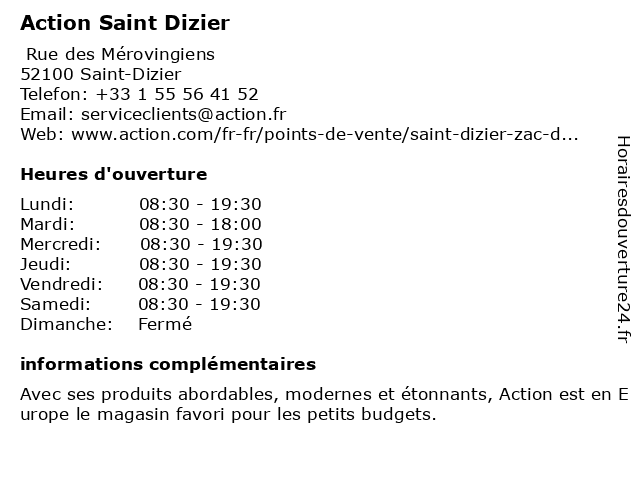 1 Action (Distance: 0,08 km) . Rue des Mérovingiens, 52100 Saint Dizier action, décoration, magasin, maison, produits ménagers 2 Centre Communal D'action Sociale C.C.A.S (Distance: 1,38 km) 4 Rue Godard Jeanson, 52100 Saint-Dizier c.c.a.s, centre, communal, d'action, sociale 3 Agence Action Logement SAINT DIZIER (Distance: 2,43 km) 53 Rue Du President Carnot, 52100 Saint-Dizier action, agence, dizier, logement, saint 4 Gitem (Distance: 21,64 km) 6 Place de L Hôtel de ville, 52220 La Porte-du-Der aspirateur, gitem, lave linge, lave vaisselle, literie, multimédia, ordinateur, petit électroménager, réfrigérateur, service après vente, smartphone, téléviseur, électroménager, électroménager responsable 5 Action Bar-le-Duc (Distance: 22,13 km) 77 Rue Ernest Bradfer, 55000 Bar-le-Duc action, animaux domestiques, articles de sport, articles ménagers, bar, boissons & alimentation, bricolage, cuisine, duc, habitat, hobby, hygiène & beauté, jardin, jouets, le, mode, multimédia, papeterie & bureau, voyages 6 Action Vitry-le-François (Distance: 29,24 km) 8 Avenue du Bois Legras, 51300 Vitry-le-François action, animaux domestiques, articles de sport, articles ménagers, boissons & alimentation, bricolage, cuisine, françois, habitat, hobby, hygiène & beauté, jardin, jouets, le, mode, multimédia, papeterie & bureau, vitry, voyages |
