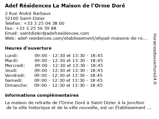 | Dimanche | 09:00-12:30 et 13:30-18:45 |