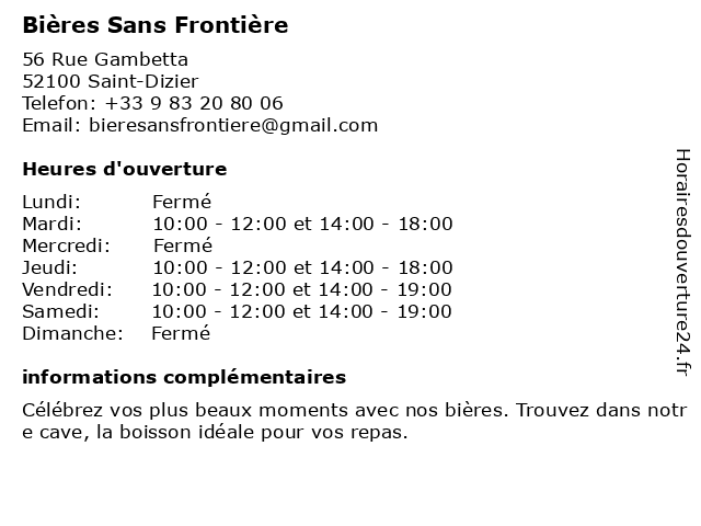 | Samedi | 10:00-12:00 et 14:00-19:00 |