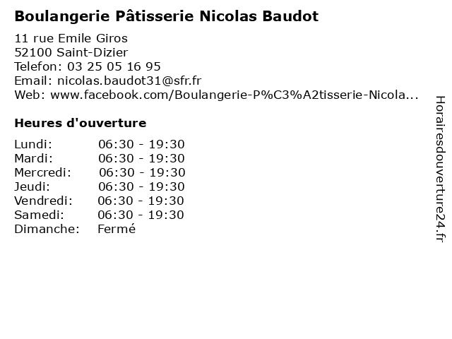 Termes de recherche pour Boulangerie Pâtisserie Nicolas Baudot:nicolas, alimentation, commerce, boulangerie, pain, gateaux, pâtisserie, baguette, baudot, saint-dizier |