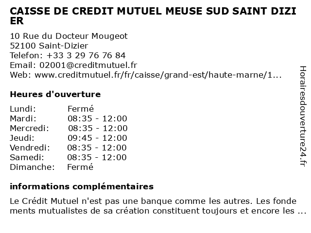 1 Crédit Mutuel (Distance: 0,00 km) 10 Rue Du Docteur Mougeot, 52100 St Dizier compagnie de téléphone, crédit, mutuel, organisme d'assurance 2 Caisse d'Épargne (Distance: 0,15 km) 8 Avenue de la République, 52100 Saint-Dizier banque, caisse, carte, d'epargne, d'épargne, services 3 CCI Meuse Haute-Marne (Distance: 0,49 km) 55 Rue du Président Carnot, 52100 Saint-Dizier cci, haute, marne, meuse 4 Caisse Primaire d'Assurance Maladie (CPAM) (Distance: 1,16 km) 7 Rue du Brigadier-Albert, 52100 Saint-Dizier administration, assoc, caisse, cpam, d'assurance, maladie, primaire, services, services publics 5 Caisse d'Epargne (Distance: 1,39 km) 1 Place de l'Europe, 52100 Saint Dizier assurances, banques, caisse, d'epargne, services 6 Caisse d'Allocations Familiales (CAF) de Haute-Marne (Distance: 4,36 km) 23 Rue De La République, 52100 Saint-Dizier administration, assoc, caf, caisse, d'allocations, de, familiales, haute, marne, services, services publics |