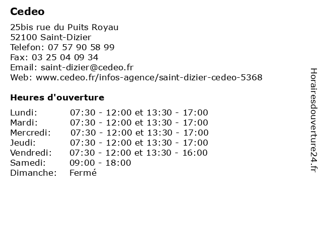 | Mardi | 07:30-12:00 et 13:30-17:00 |