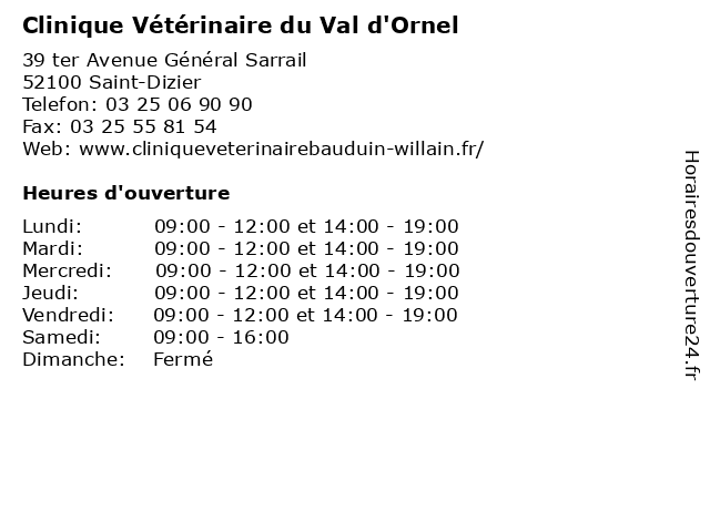 | Mercredi | 09:00-12:00 et 14:00-19:00 |