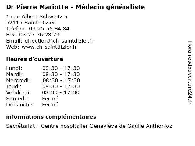| Mercredi | 08:30-17:30 |