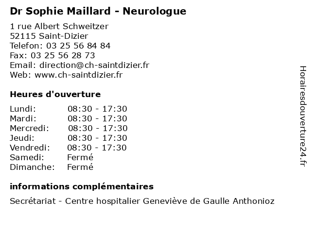 1 Dr Sophie Gerard - Pédiatre (Distance: 0,00 km) 1 rue Albert Schweitzer, 52115 Saint-Dizier consultation, docteur, dr, gerard, med, médecin, médecine, pédiatre, sophie, traitement 2 Dr Anne-Sophie Hentzien - Médecin généraliste (Distance: 2,47 km) 60 Avenue de la République, 52100 Saint-Dizier angiologie, anne, consultation, docteur, dr, dr., généraliste, hentzien, médecin, santé, sophie 3 Sophie Thomas Immobilier (Distance: 19,48 km) 57 Boulevard de la Rochelle, 55000 Bar-le-Duc immobilier, sophie, thomas 4 Mougenot Mathis Sophie (Distance: 19,71 km) 2 Rue de Couchot, 55000 Bar-le-Duc mathis, mougenot, sophie 5 Maillard Menuiserie (Distance: 35,34 km) 5 La Perlatte, 10330 Montmorency-Beaufort maillard, menuiserie 6 Dr Florence Desfrancois - Neurologue (Distance: 57,47 km) 16 Ter Route de Louvois, 51520 Saint-Martin-sur-le-Pré cerveau, desfrancois, dr, florence, nerf, neurologie, neurologue |
