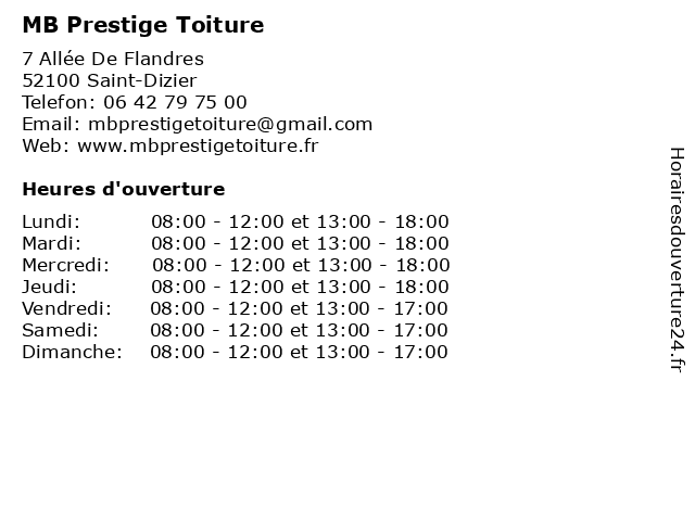 | Lundi | 08:00-12:00 et 13:00-18:00 |