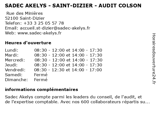 Termes de recherche pour SADEC AKELYS - SAINT-DIZIER - AUDIT COLSON:saint, dizier, audit, colson, sadec, akelys |