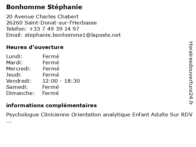 | Samedi | Fermé |