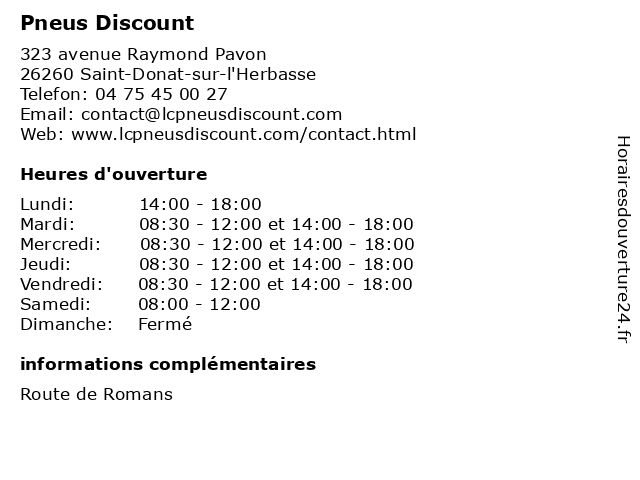 1 Point S - Drom Pneus Sas (Distance: 1,82 km) - Route des sables et près de Gaud, 26260 Saint-Donat-sur-l'Herbasse amortisseur, drom, echappement, freinage, pneu, pneus, point, revision, sas 2 Confort Auto / Air Pneus (Distance: 7,70 km) - de Génissieux, 26750 Génissieux air, auto, automobile, autovision, confort, contrôle technique, pneus 3 Décor Discount (Distance: 10,42 km) 7 Avenue des Allobroges, 26100 Romans-sur-Isère discount, décor, gazon synthétique, jonc de mer, moquette, papier peint, peinture, rideau, sol vinyle, stratifié, tapis, tissu au mètre 4 FRANCE PNEUS SERVICES (Distance: 10,69 km) 4 Allée des Frênes, 26100 Romans-sur-Isère clim amortisseurs echappement, decalaminage hydrogene, entretien vidange, france, freins, garage, montage pneu, passage à l'ethanol, plaquettes, pneus, services, vente et montage de pneus toutes marques, vente pneu 5 Point S - Drom Pneus SAS (Distance: 11,69 km) 45 allée du Languedoc, 26300 Bourg De Peage amortisseur, drom, echappement, freinage, pneu, pneus, point, revision, sas 6 First Stop Marron Pneus Saint-Jean-de-Muzols (Distance: 14,63 km) 1 Impasse Des Îles Za La Maladière, 07300 St Jean De Muzols atelier d'usinage, de, first, jean, magasin de pièces automobiles, magasin de pneus, marron, muzols, pneus, saint, station-service de changement de l'huile, stop |