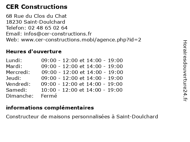 | Mercredi | 09:00-12:00 et 14:00-19:00 |
