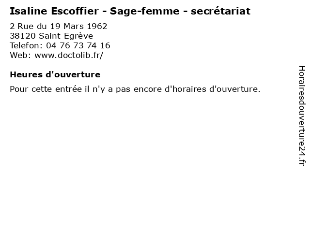 | Appeler Isaline Escoffier - Sage-femme - secrétariat | |