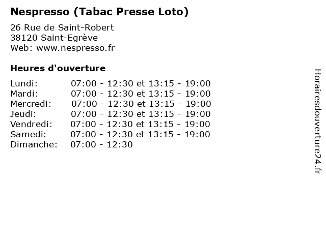 | Mardi | 07:00-12:30 et 13:15-19:00 |