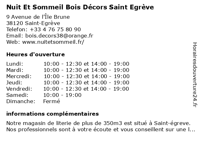 | Mercredi | 10:00-12:30 et 14:00-19:00 |