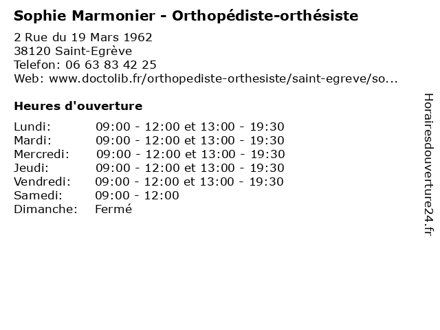 | Lundi | 09:00-12:00 et 13:00-19:30 |