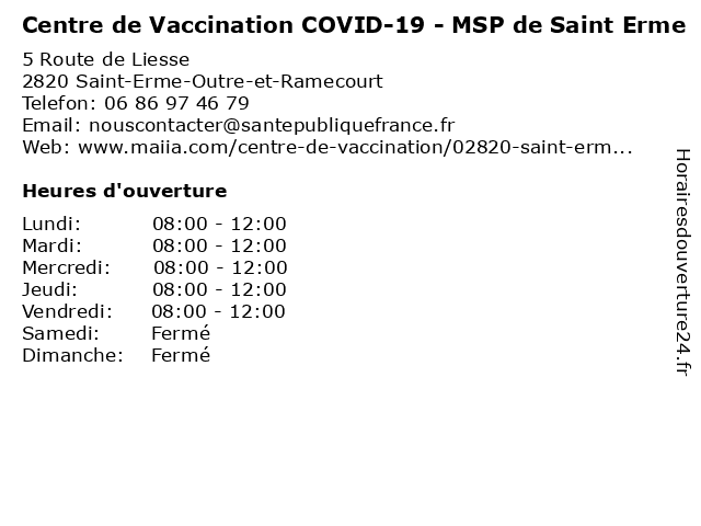 | 1 Centre de Vaccination COVID-19 du CH de Laon (Distance: 18,08 km) 33 Rue Marcellin Berthelot, 02000 Laon 19, centre, ch, covid, covid 19, covid19, de, du, laon, médecin, médecine, médical, test, vaccin, vaccination, vaccins 2 Centre de Vaccination COVID-19 - MSP de Vervins (Distance: 33,82 km) - Place de la Liberté, 02140 Vervins 19, centre, covid, covid 19, covid19, de, msp, médecin, médecine, médical, test, vaccin, vaccination, vaccins, vervins 3 Centre de Vaccination COVID-19 (Distance: 36,65 km) 1 Place Hourtoule, 08300 Rethel 19, centre, covid, covid 19, covid19, de, médecin, médecine, médical, test, vaccin, vaccination, vaccins 4 GrandAudition (Distance: 36,85 km) 22 place de la République, 08300 Rethel accessoires, appareil, audioprothésiste, audition, grandaudition, test 5 Centre de Vaccination COVID-19 du Pôle de santé de la Goutte d'or (Distance: 44,45 km) 14 Rue de la Goutte d'Or, 02130 Fère-en-Tardenois 19, centre, covid, covid 19, covid19, d'or, de, du, goutte, la, médecin, médecine, médical, pôle, santé, test, vaccin, vaccination, vaccins 6 Centre de Vaccination COVID-19 - MSP de Guise (Distance: 44,60 km) 41 Rue André Godin, 02120 Guise 19, centre, covid, covid 19, covid19, de, guise, msp, médecin, médecine, médical, test, vaccin, vaccination, vaccins |