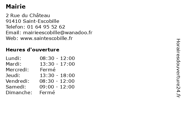 1 Mairie (Distance: 2,99 km) Pl De La Mairie, 91780 Merobert central, commune, gouvernement, mairie, merobert, nra 2 Mairie (Distance: 5,21 km) 9 Rue du Plessis, 91410 Richarville administration, mairie, public, service 3 Mairie (Distance: 7,13 km) - Place du Jeu de Paume, 91780 Chalo-Saint-Mars administration, mairie, public, service 4 Mairie (Distance: 11,27 km) . Rue Charles-Legaigneur, 78730 Sainte-Mesme administration, mairie, public, service 5 Mairie (Distance: 13,78 km) 41 Grand'rue, 91150 Ormoy-la-Rivière central, commune, gouvernement, mairie 6 Mairie (Distance: 14,40 km) - Place de l'Hôtel-de-Ville, 91150 Etampes administration, mairie, public, service |