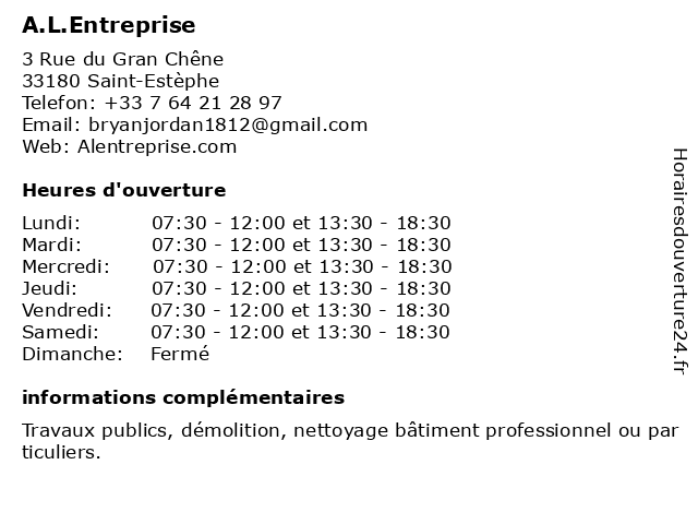 Lundi | 07:30-12:00 et 13:30-18:30 |