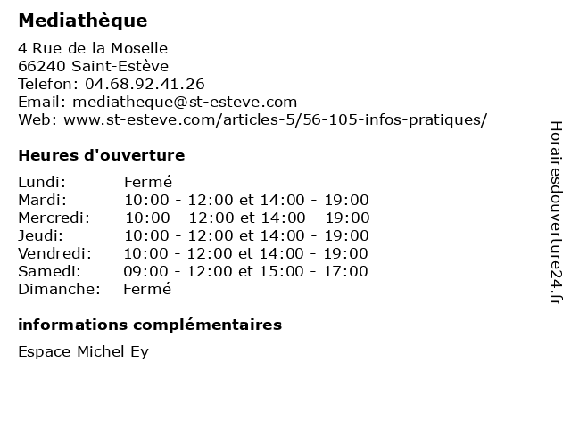 Mercredi | 10:00-12:00 et 14:00-19:00 |