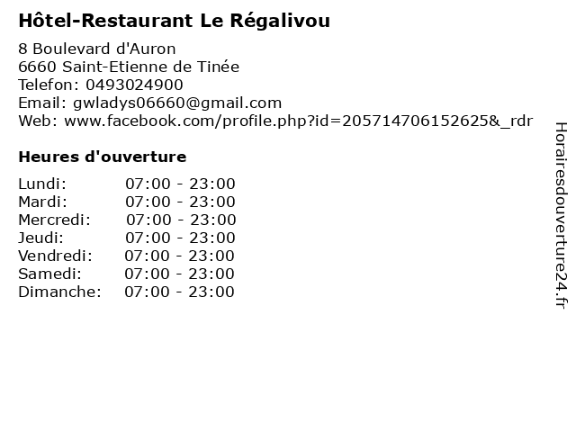 | Samedi | 07:00-23:00 |