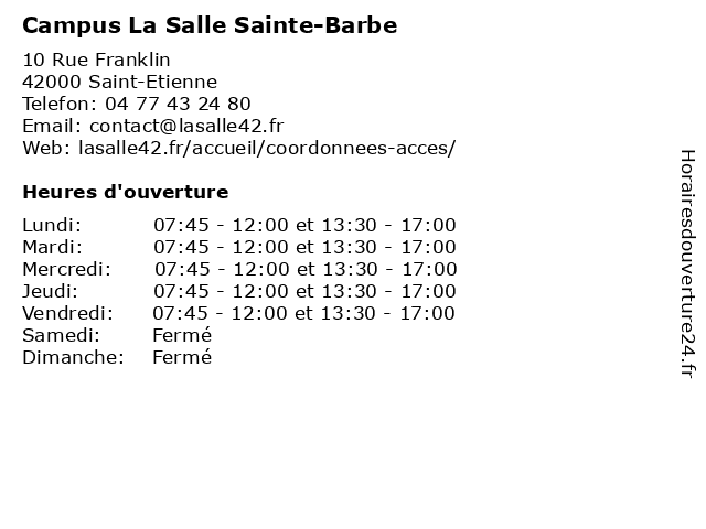 | Lundi | 07:45-12:00 et 13:30-17:00 |