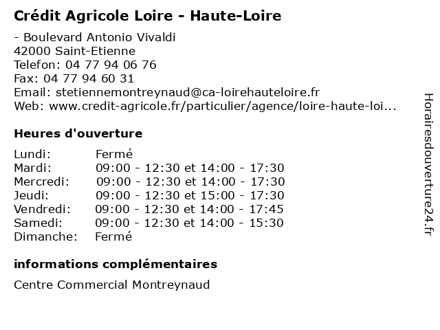 1 Crédit Agricole Loire - Haute-Loire (Distance: 1,59 km) 20 Place Massenet, 42000 Saint-Etienne agence, agricole, assurance, bancaire, banque, crédit, haute, loire 2 Crédit Agricole Loire - Haute-Loire (Distance: 1,80 km) 20 Place Jean-Baptiste Per, 42270 Saint-Priest-en-Jarez agence, agricole, assurance, bancaire, banque, crédit, haute, loire 3 Crédit Agricole Loire - Haute-Loire (Distance: 2,15 km) 12 Place Marechal Foch, 42660 Saint-Genest-Malifaux agence, agricole, assurance, bancaire, banque, crédit, haute, loire 4 Crédit Agricole Loire - Haute-Loire (Distance: 2,61 km) 70 Rue De Verdun, 42580 L'Etrat agence, agricole, assurance, bancaire, banque, crédit, haute, loire 5 Crédit Agricole Loire - Haute-Loire (Distance: 3,04 km) 26 Rue Victor Hugo, 42350 La Talaudière agence, agricole, assurance, bancaire, banque, crédit, haute, loire 6 Crédit Agricole Loire - Haute-Loire (Distance: 3,10 km) 1 Place Jean Jaurès, 42000 Saint-Etienne agricole, banque, credit, crédit, emprunt, epargne, haute, loire, pret, retrait |
