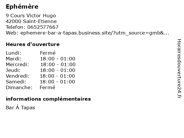 | Samedi | 18:00-01:00 |